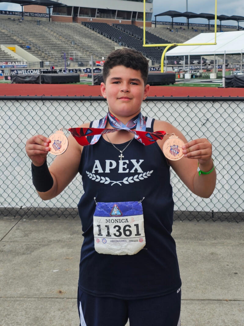 Fuel the Legacy. Build the Future.Vincent Monica stands alone—an 11-year-old athlete ranked Top-10 nationally in both shot put and discus, competing unattached, without the backing of a school or club. He’s also the only unattached athlete in the nation his age to earn All-American honors in both events at the AAU Junior Olympics. Every throw is a testament to family-led coaching, verified achievement, and quiet resilience. The Apex Legacy Fund exists to support this rare journey—not just with gear and travel, but with belief.